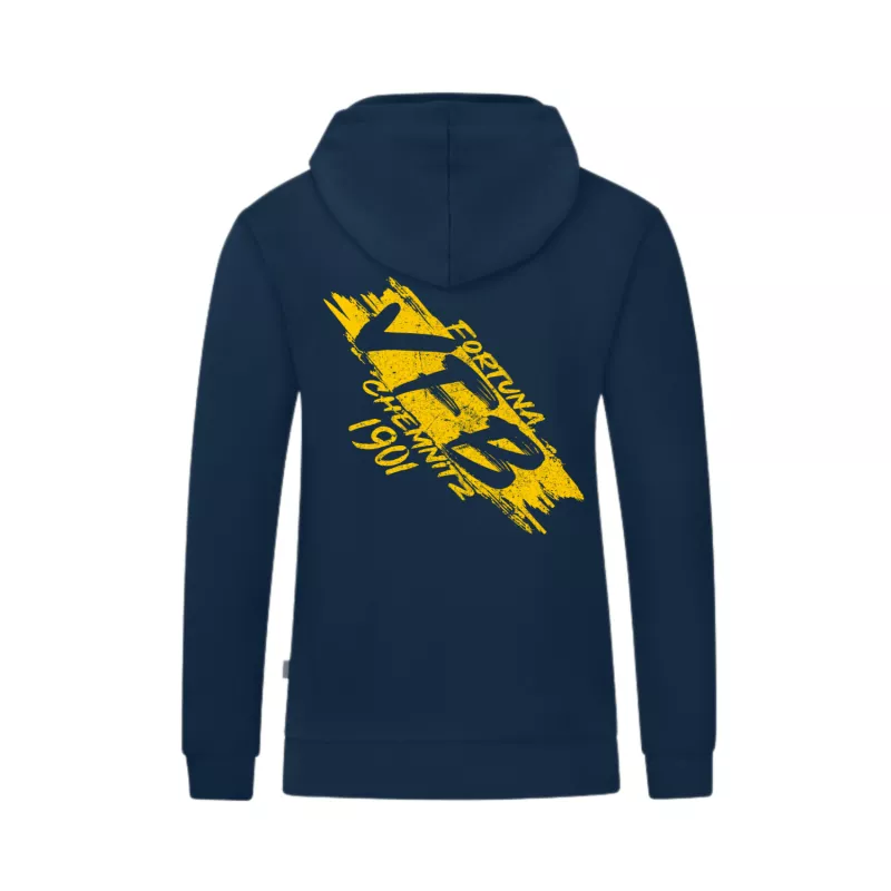 Nachhaltigkeit trifft Vereinsliebe – die Fortuna Kapuzenjacke des VfB Fortuna Chemnitz vereint sportliches Design mit hochwertiger Verarbeitung und umweltbewusster Herstellung. Gefertigt aus 70 % Bio-Baumwolle und 30 % recyceltem Polyester, überzeugt die Jacke durch ihre angenehm weich angeraute Innenseite und den hohen Tragekomfort. Die verstärkten Schulternähte garantieren Formstabilität und Langlebigkeit – perfekt für Beruf, Freizeit oder den Spieltag. Praktische Details wie Kordeln mit Metallösen, Rippbündchen an Ärmeln und Saum, sowie aufgesetzte Kängurutaschen sorgen für Funktionalität und Komfort. Die Kapuze mit Single-Jersey-Innenseite bietet zusätzlichen Schutz an kühleren Tagen. Auch nach häufigem Waschen bleibt das Marineblau farbecht und die Jacke behält ihre Form. Veredelt mit einem stilvollen Motiv des VfB Fortuna Chemnitz, ist diese Kapuzenjacke das perfekte Kleidungsstück für alle echten Fortunen, die Nachhaltigkeit und Vereinsstolz miteinander verbinden möchten.