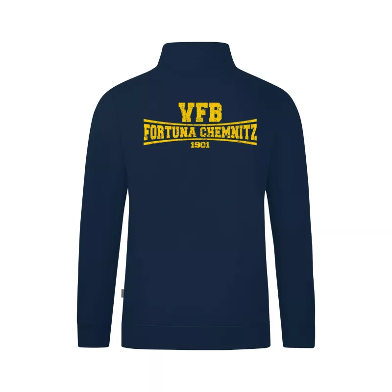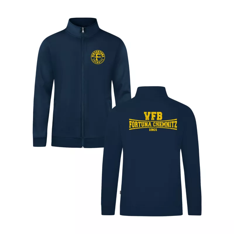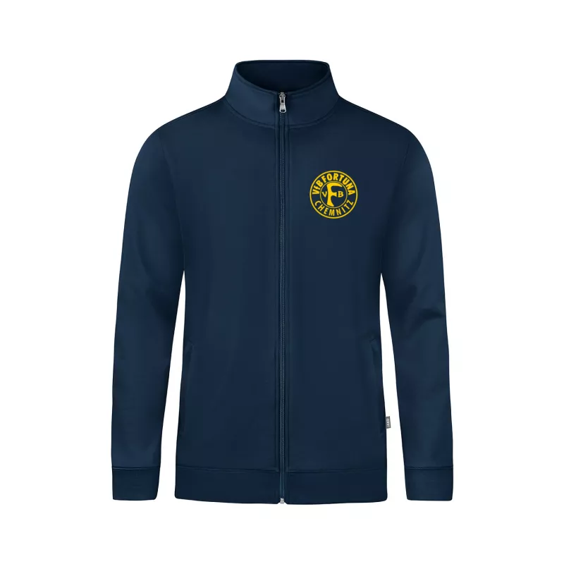 Robust, funktional und mit echtem Vereinscharakter – die Fortuna Sweatjacke Doubletex des VfB Fortuna Chemnitz ist die ideale Kombination aus Widerstandsfähigkeit, Komfort und Stil. Gefertigt aus innovativem Doubletex-Material in French-Terry-Qualität, überzeugt die Jacke durch ihre hohe Strapazierfähigkeit und ihren angenehmen Tragekomfort. Die hochwertige Materialmischung aus gekämmter, langstapeliger Baumwolle und Polyester sorgt für Formstabilität, Atmungsaktivität und Langlebigkeit – perfekt für Beruf, Training und Freizeit. Mit praktischen Seitentaschen mit Reißverschluss, einem Stehkragen und verstärkten Nähten an Schulter und Armloch bietet diese Sweatjacke optimale Funktionalität. Die Rippbündchen an Ärmeln und Saum sorgen für einen sportlichen Look und angenehmen Sitz. Durch die Eignung für Industriewäsche nach DIN EN ISO 15797 bleibt sie auch bei hoher Beanspruchung zuverlässig in Form und Farbe. Das dezente JAKO-Branding und die Veredelung mit dem Motiv des VfB Fortuna Chemnitz machen die Jacke zum idealen Begleiter für alle, die Vereinsstolz und Qualität gleichermaßen schätzen.